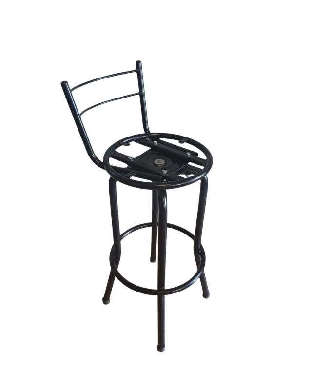 Estrutura para banqueta de bar fabricada em tubo de 1" com 4 pés, encosto em barra trefilada de 1/4" com sistema giratório.
