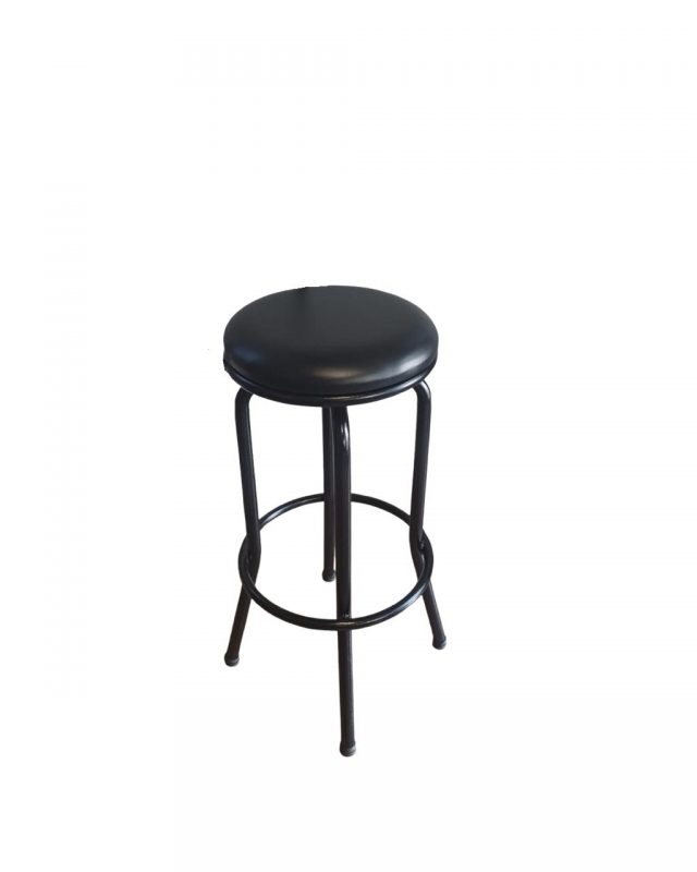 Estrutura para banqueta de bar fabricada em tubo de 1" com 4 pés com sistema giratório, estofado com espuma laminada de 30 mm revestida em courvim nas cores preto ou branco.